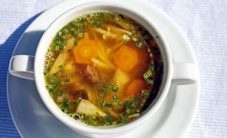Tento způsob má ale zjevnou nevýhodu: vodnatou, nerozvařenou polévku, kterou už nelze korigovat žádným kořením. Proto je lepší vzít horkou vodu, aby se nepřestala vařit, a přidat bujónovou kostku nebo sušené houby pro zvýraznění chuti.